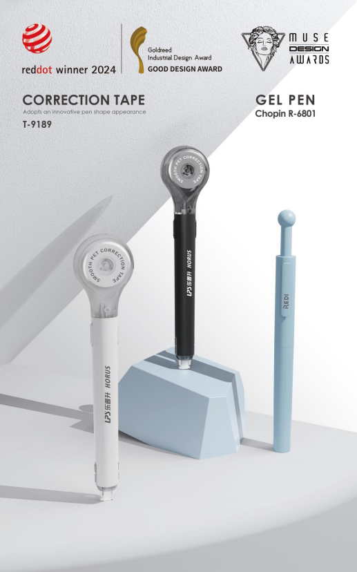 這種“貼近人才+扎根用戶”的模式,讓樂普升從技術突破逐步邁向國際認可。說起斬獲“紅點獎”的筆式修正帶,郭董特意放慢語速,詳細講起了背后的故事。他說,團隊在調研時發現,傳統修正帶對學生有三大困擾:握持時不夠舒適、日常攜帶不方便、自帶的蓋帽還容易丟失。正是看到這些痛點,“讓修正也能如書寫般自如”成了他們明確的設計目標。為此,團隊做了不少突破性嘗試:憑借3cm帶芯艙與轉軸式引帶管道的顛覆性設計,把傳統修正帶的帶身徹底改造成了一支筆的大小,解決了攜帶和握持的問題;還推出了可替換芯的方案,不僅延長了修正帶主體的使用壽命,更實現了續航與環保的雙重升級。他強調,2024年這款產品獲得德國紅點獎,不僅是國際社會對“中國設計”的認可,更印證了創新的本質從來不是天馬行空的想象,而是始終把用戶放在心上的創新。