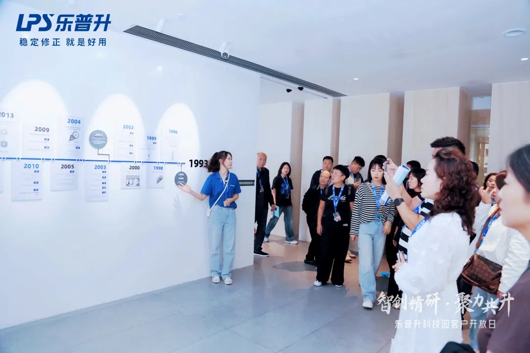 在專業(yè)人員的陪同下,嘉賓們首先參觀了"樂普升30年時(shí)光軌跡"展區(qū),