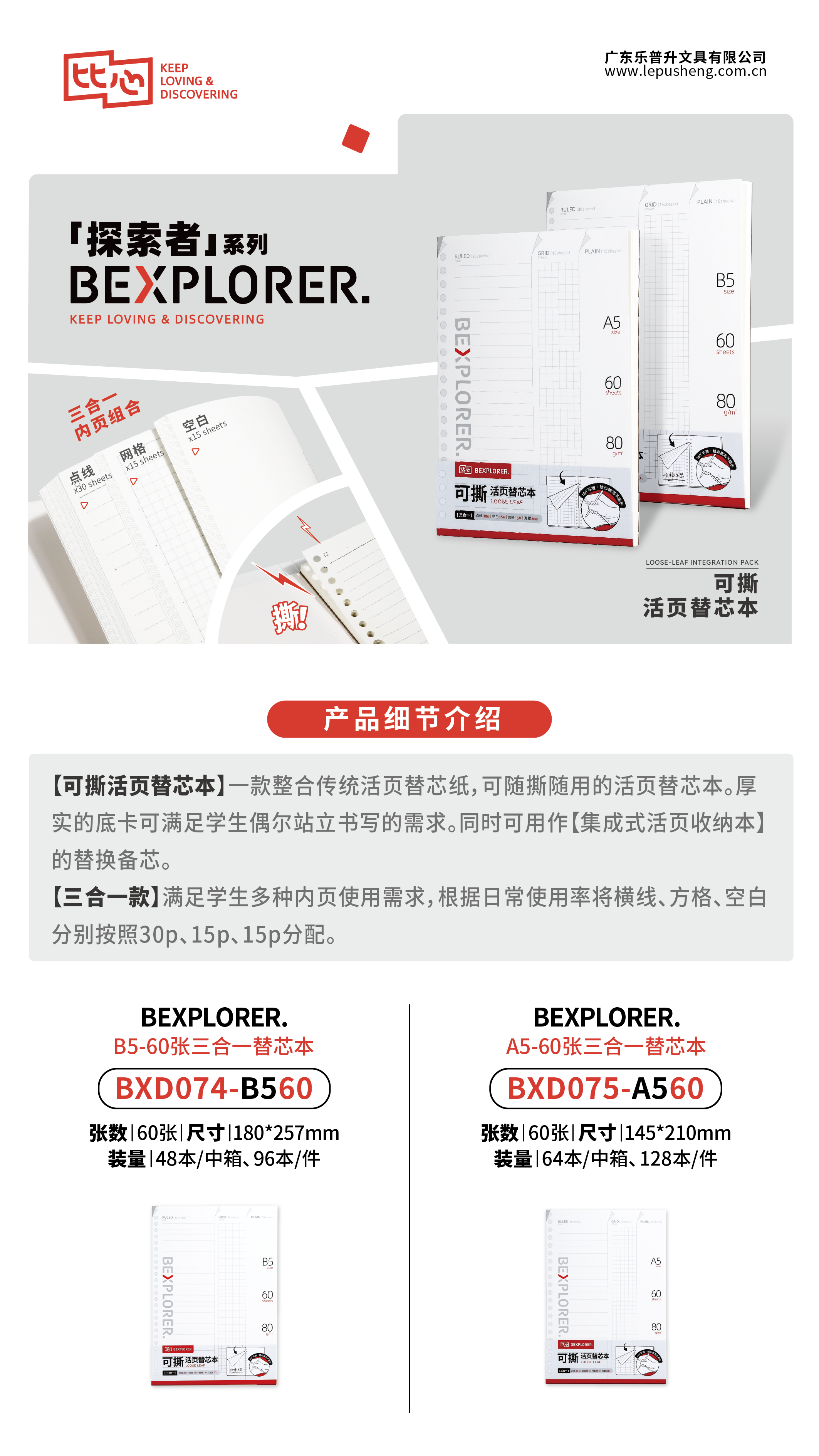 可撕活頁替芯本BXD074/BXD075