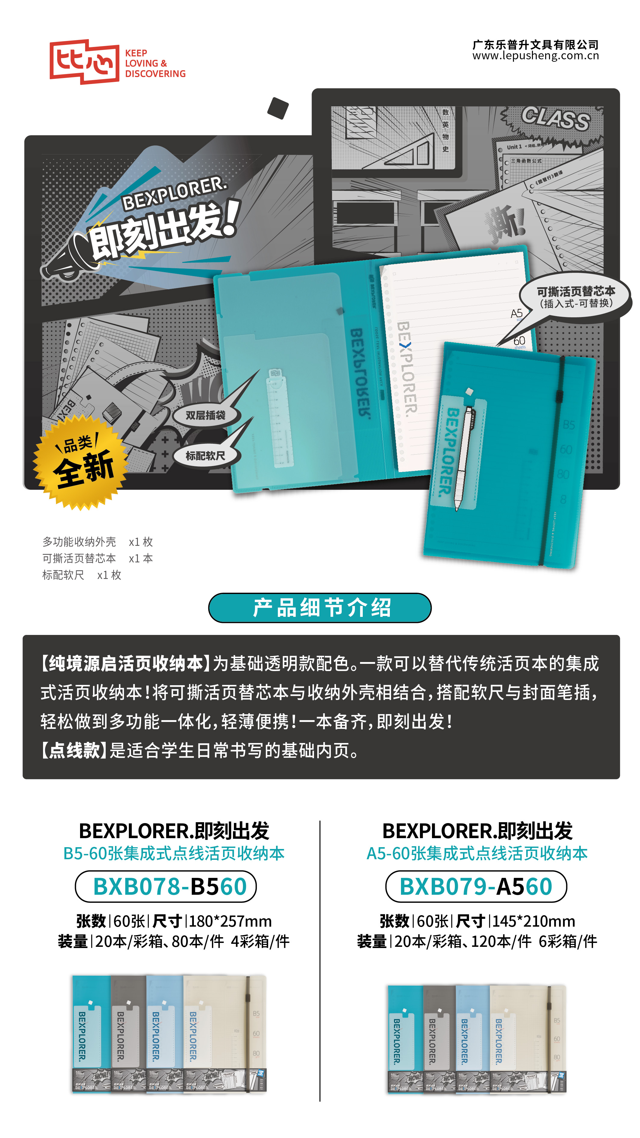 產品描述:集成式活頁收納本-多功能收納外殼+可撕替芯本